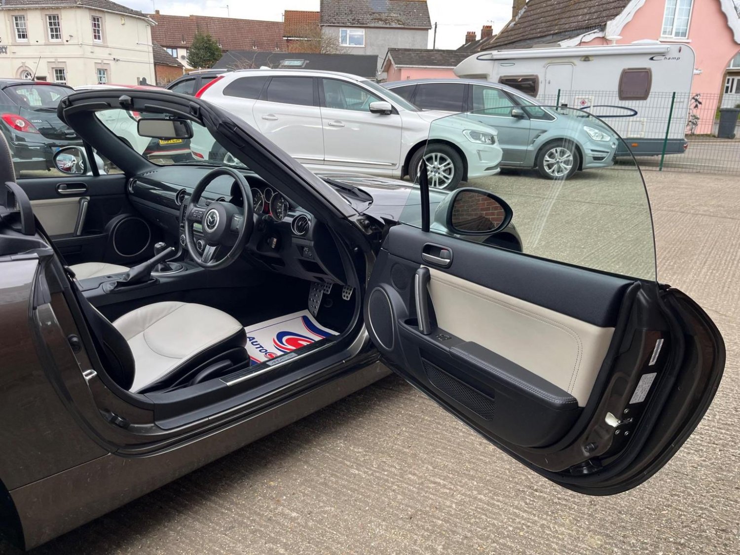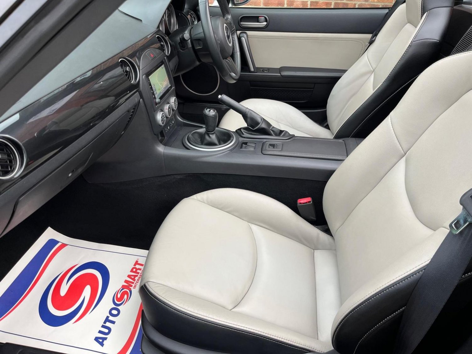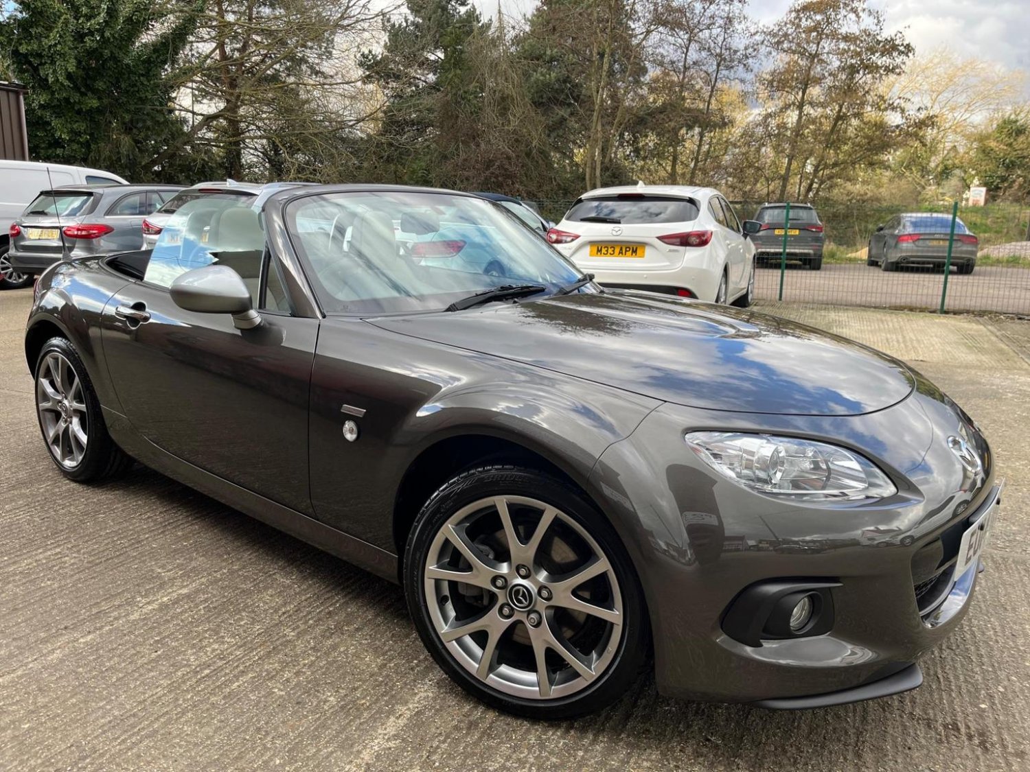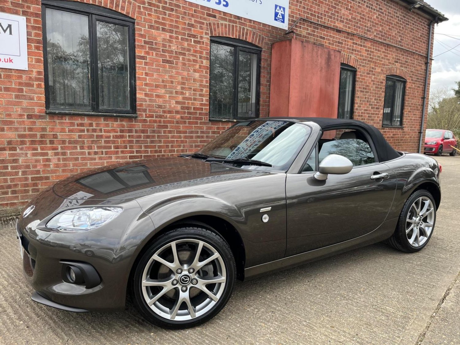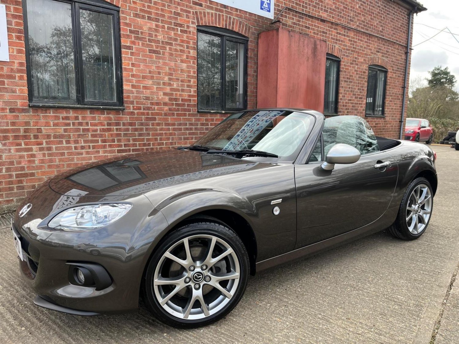 Podium Cars are proud to offer this beautiful Mazda MX-5. This is the highly desirable Sport Venture Edition. Just 27,000 miles from new. Owned from new until late 2023 by a local retired gentleman, who then left the car in his will to a family member following his passing. They kept the car for a little while due to its sentimental value but have now parted with the car as it is surplus to requirements. Clearly cherished since new. The low mileage is supported by a full service history and has just been serviced by ourselves. The MOT expires in March 2026. Matching nearly new Bridgestone Potenza Tyres on unmarked Alloy Wheels. Brand new Front and Rear Brake Discs and Pads have just been fitted by ourselves. Lovely Spec includes Satellite Navigation, Full Leather, Heated Seats, Remote Central Locking, Power Steering, Electric Windows, Original Handbooks, 2 x Mazda Keys, plus more. A fantastic, very genuine example of this hugely popular sports convertible. This car is Hpi Clear. We offer Low Rate Finance packages, tailored to suit your budget. All of our cars are supplied with a 6 Month Bluechip Premium Warranty for your peace of mind. Extended Warranties are available at very competitive prices. A deposit to secure this car can be paid by Debit Card. The balance payment is required by Bank Transfer. The car will remain on sale until a deposit is placed to secure the purchase. Please read our Customer Reviews, we are very proud of our reputation. We are a self financed family business with a passion for Product Quality, Customer Service and Satisfaction. We have operated from our current Brantham location since June 2014. All Part Exchanges are considered, please talk to us before you sell your vehicle elsewhere. Please call us on 07875 599213 before travelling to us to ensure this vehicle is still available, and that we are able to give you the time and attention that you deserve.