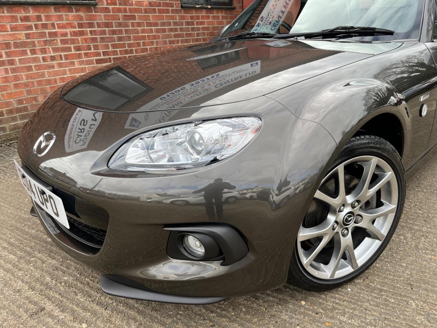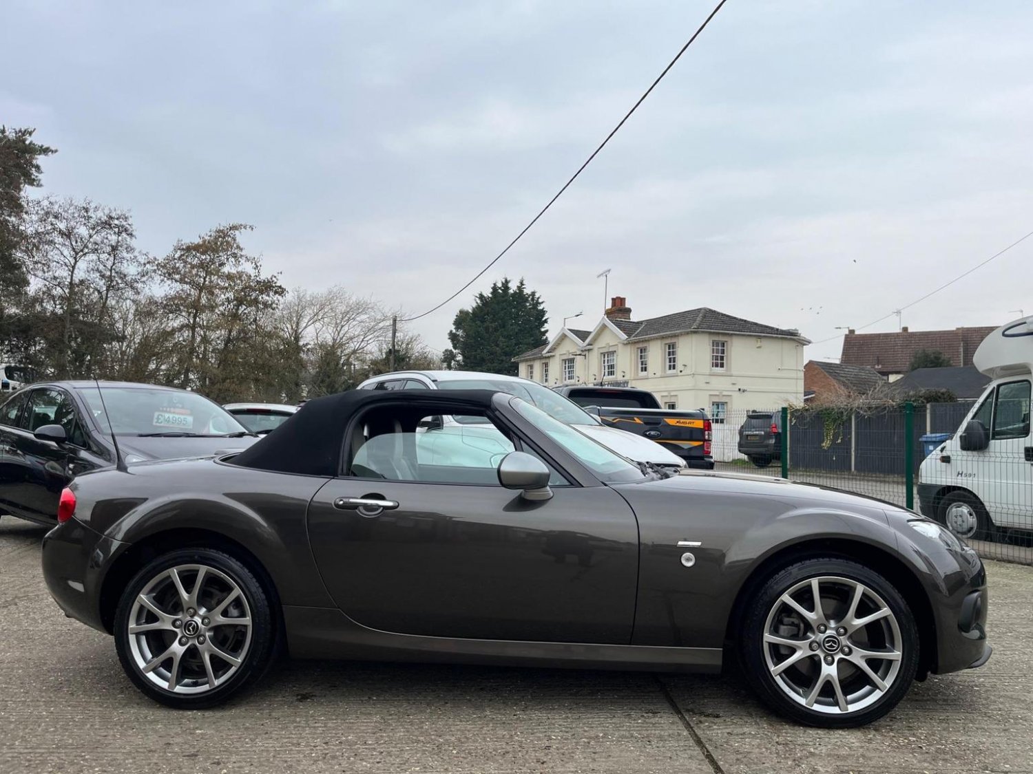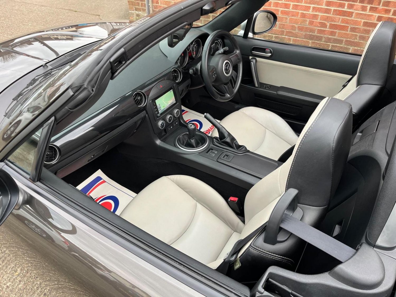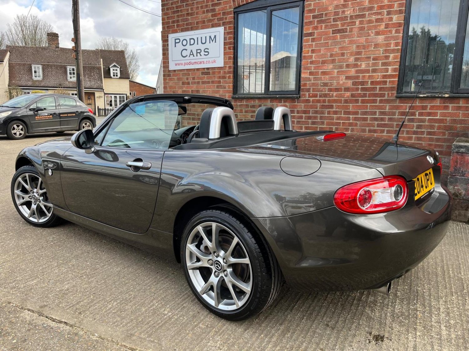 Podium Cars are proud to offer this beautiful Mazda MX-5. This is the highly desirable Sport Venture Edition. Just 27,000 miles from new. Owned from new until late 2023 by a local retired gentleman, who then left the car in his will to a family member following his passing. They kept the car for a little while due to its sentimental value but have now parted with the car as it is surplus to requirements. Clearly cherished since new. The low mileage is supported by a full service history and has just been serviced by ourselves. The MOT expires in March 2026. Matching nearly new Bridgestone Potenza Tyres on unmarked Alloy Wheels. Brand new Front and Rear Brake Discs and Pads have just been fitted by ourselves. Lovely Spec includes Satellite Navigation, Full Leather, Heated Seats, Remote Central Locking, Power Steering, Electric Windows, Original Handbooks, 2 x Mazda Keys, plus more. A fantastic, very genuine example of this hugely popular sports convertible. This car is Hpi Clear. We offer Low Rate Finance packages, tailored to suit your budget. All of our cars are supplied with a 6 Month Bluechip Premium Warranty for your peace of mind. Extended Warranties are available at very competitive prices. A deposit to secure this car can be paid by Debit Card. The balance payment is required by Bank Transfer. The car will remain on sale until a deposit is placed to secure the purchase. Please read our Customer Reviews, we are very proud of our reputation. We are a self financed family business with a passion for Product Quality, Customer Service and Satisfaction. We have operated from our current Brantham location since June 2014. All Part Exchanges are considered, please talk to us before you sell your vehicle elsewhere. Please call us on 07875 599213 before travelling to us to ensure this vehicle is still available, and that we are able to give you the time and attention that you deserve.