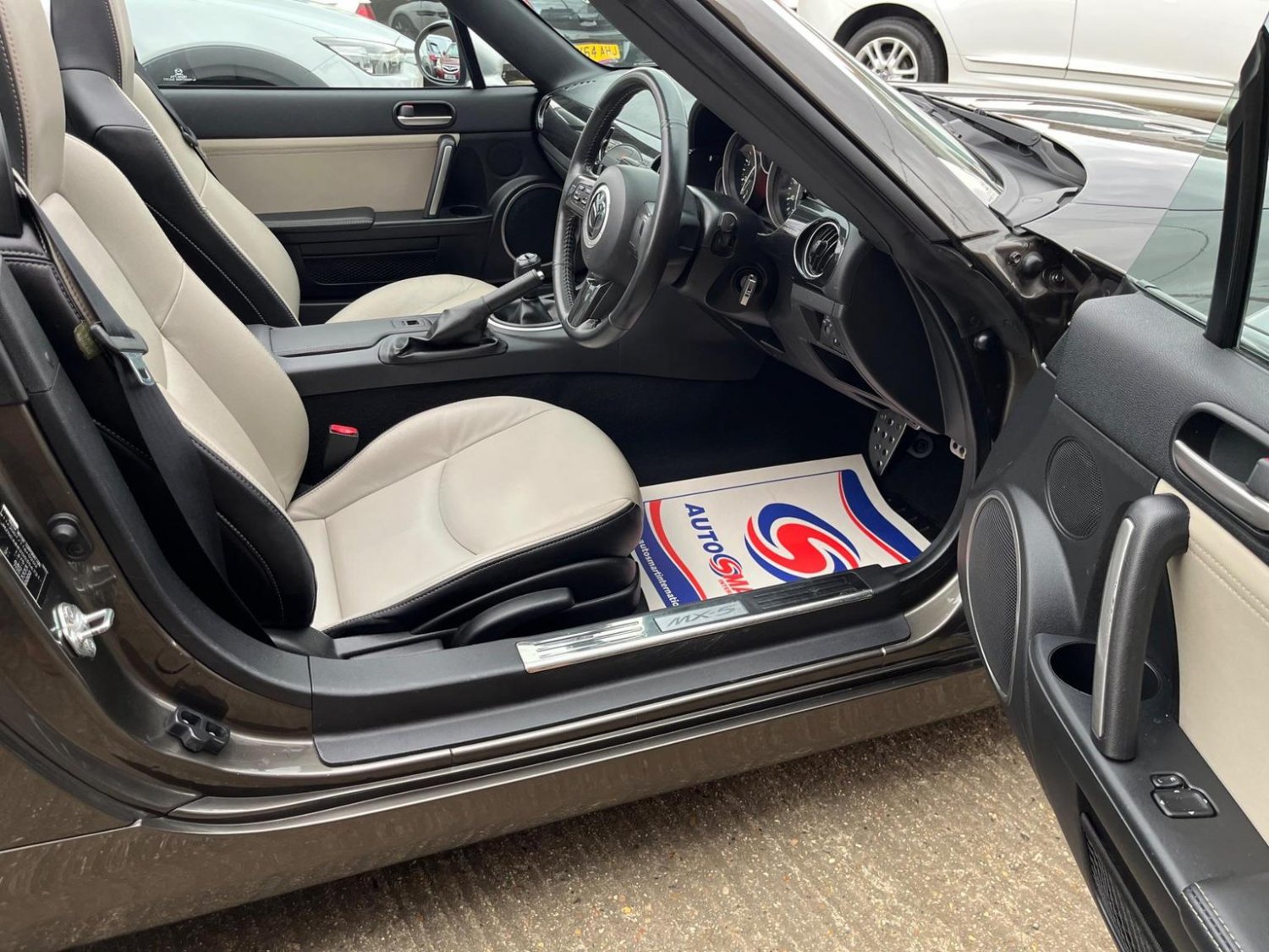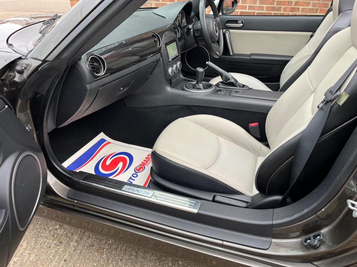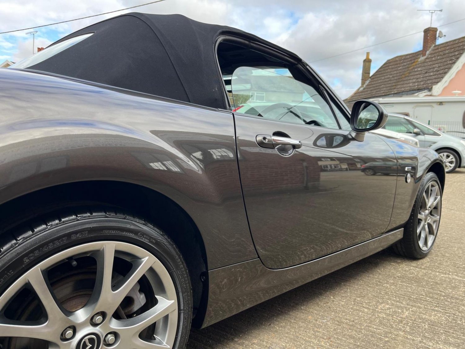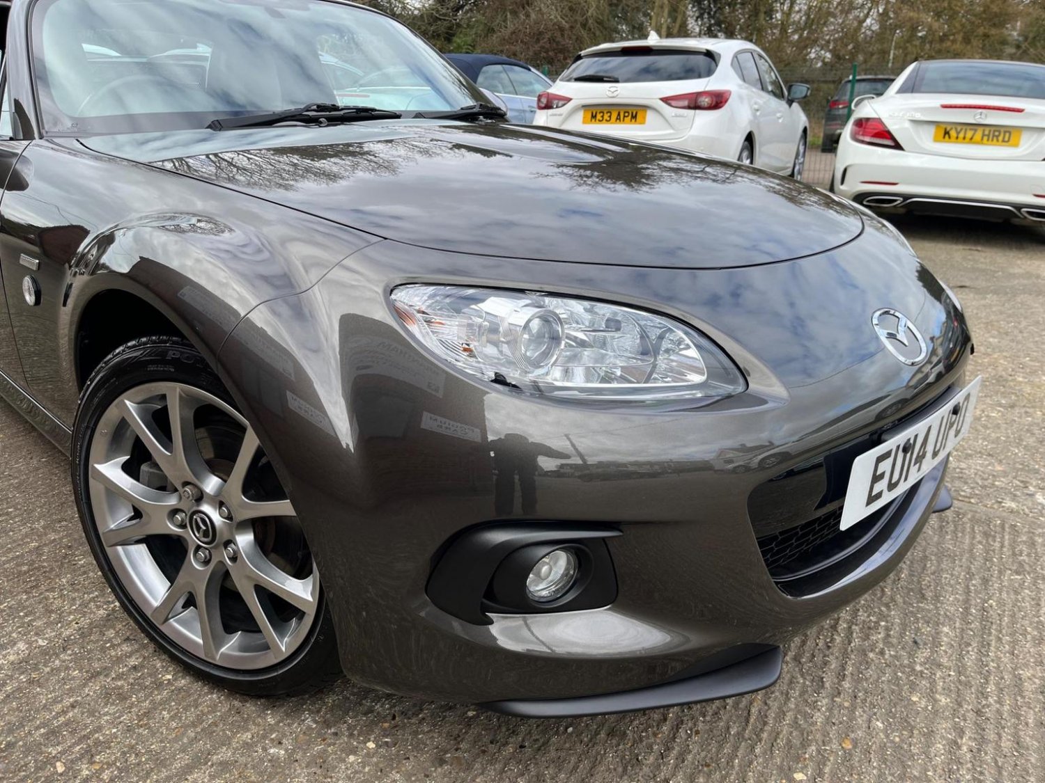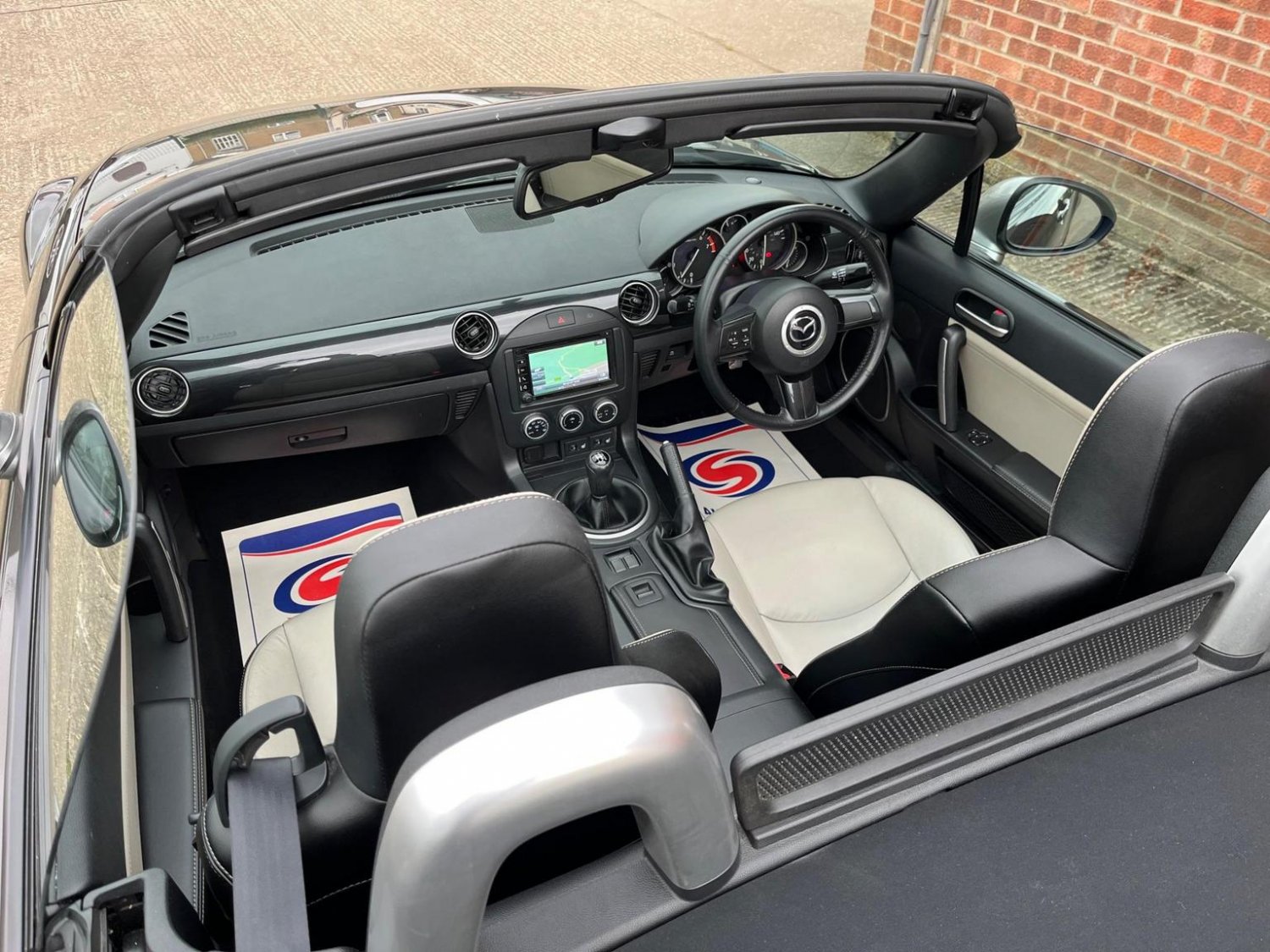 Podium Cars are proud to offer this beautiful Mazda MX-5. This is the highly desirable Sport Venture Edition. Just 27,000 miles from new. Owned from new until late 2023 by a local retired gentleman, who then left the car in his will to a family member following his passing. They kept the car for a little while due to its sentimental value but have now parted with the car as it is surplus to requirements. Clearly cherished since new. The low mileage is supported by a full service history and has just been serviced by ourselves. The MOT expires in March 2026. Matching nearly new Bridgestone Potenza Tyres on unmarked Alloy Wheels. Brand new Front and Rear Brake Discs and Pads have just been fitted by ourselves. Lovely Spec includes Satellite Navigation, Full Leather, Heated Seats, Remote Central Locking, Power Steering, Electric Windows, Original Handbooks, 2 x Mazda Keys, plus more. A fantastic, very genuine example of this hugely popular sports convertible. This car is Hpi Clear. We offer Low Rate Finance packages, tailored to suit your budget. All of our cars are supplied with a 6 Month Bluechip Premium Warranty for your peace of mind. Extended Warranties are available at very competitive prices. A deposit to secure this car can be paid by Debit Card. The balance payment is required by Bank Transfer. The car will remain on sale until a deposit is placed to secure the purchase. Please read our Customer Reviews, we are very proud of our reputation. We are a self financed family business with a passion for Product Quality, Customer Service and Satisfaction. We have operated from our current Brantham location since June 2014. All Part Exchanges are considered, please talk to us before you sell your vehicle elsewhere. Please call us on 07875 599213 before travelling to us to ensure this vehicle is still available, and that we are able to give you the time and attention that you deserve.