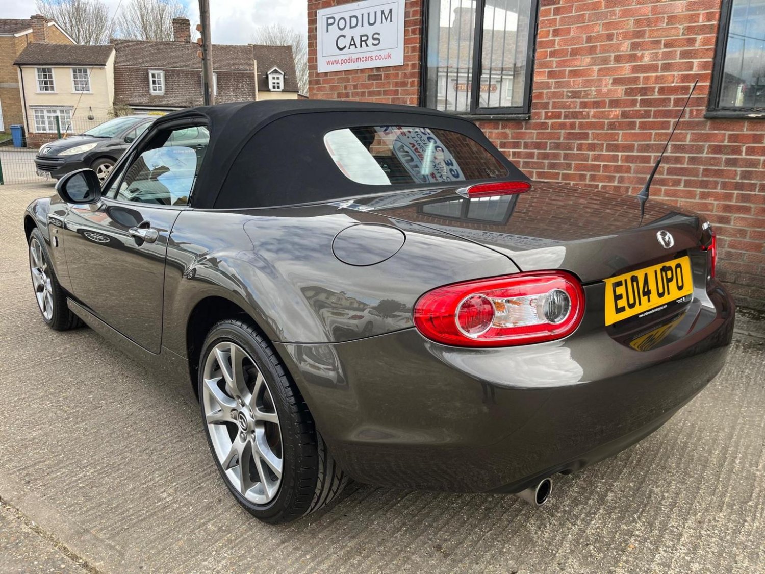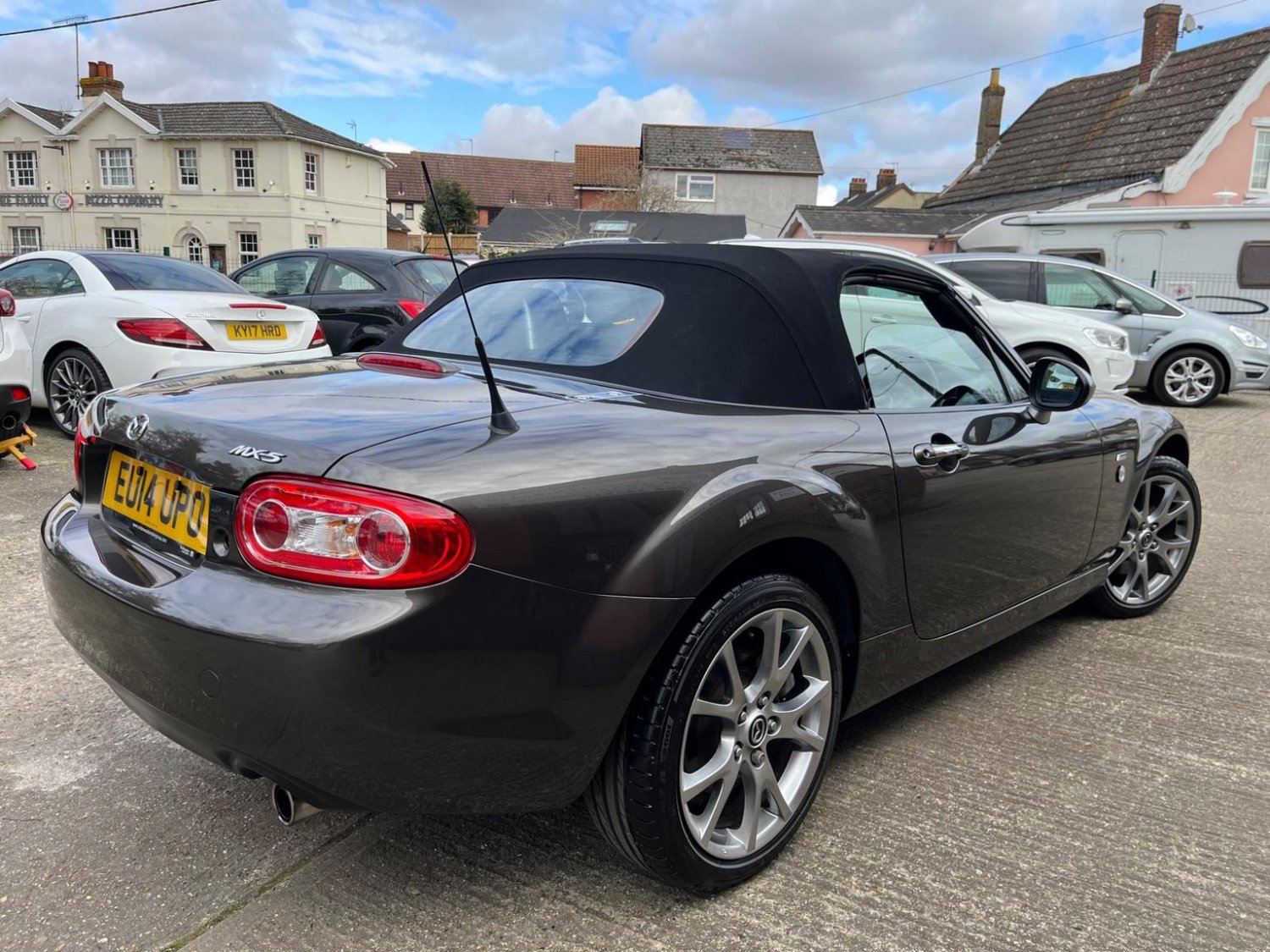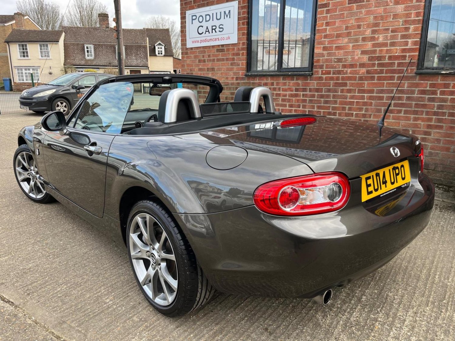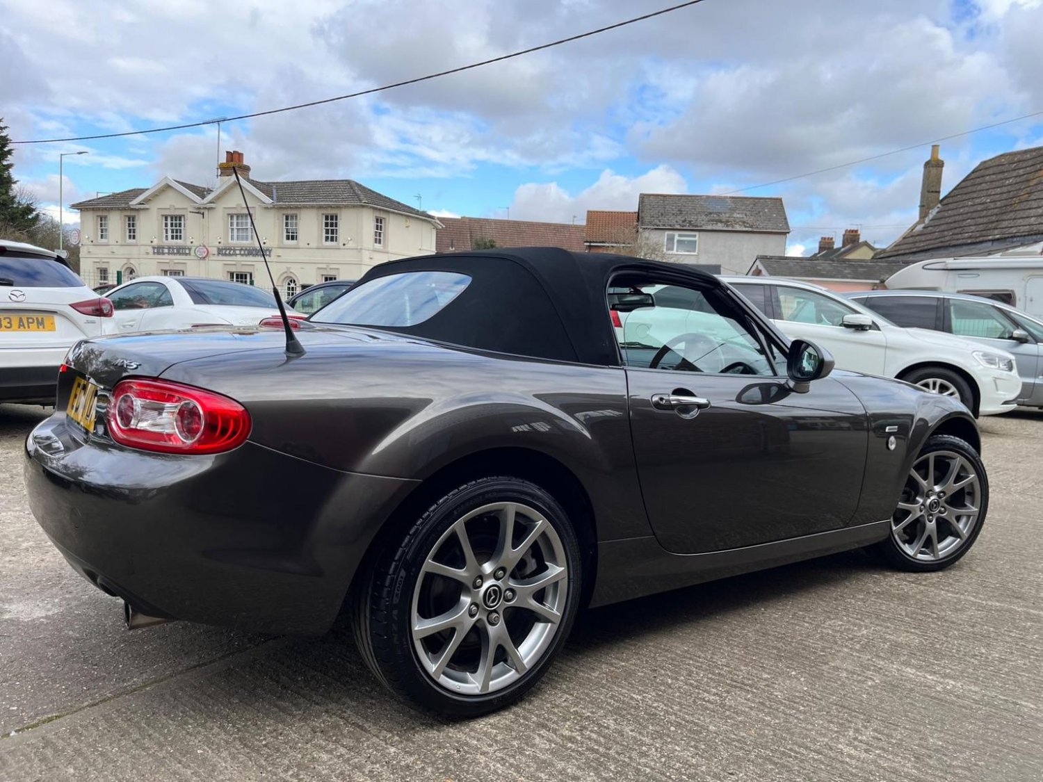 Podium Cars are proud to offer this beautiful Mazda MX-5. This is the highly desirable Sport Venture Edition. Just 27,000 miles from new. Owned from new until late 2023 by a local retired gentleman, who then left the car in his will to a family member following his passing. They kept the car for a little while due to its sentimental value but have now parted with the car as it is surplus to requirements. Clearly cherished since new. The low mileage is supported by a full service history and has just been serviced by ourselves. The MOT expires in March 2026. Matching nearly new Bridgestone Potenza Tyres on unmarked Alloy Wheels. Brand new Front and Rear Brake Discs and Pads have just been fitted by ourselves. Lovely Spec includes Satellite Navigation, Full Leather, Heated Seats, Remote Central Locking, Power Steering, Electric Windows, Original Handbooks, 2 x Mazda Keys, plus more. A fantastic, very genuine example of this hugely popular sports convertible. This car is Hpi Clear. We offer Low Rate Finance packages, tailored to suit your budget. All of our cars are supplied with a 6 Month Bluechip Premium Warranty for your peace of mind. Extended Warranties are available at very competitive prices. A deposit to secure this car can be paid by Debit Card. The balance payment is required by Bank Transfer. The car will remain on sale until a deposit is placed to secure the purchase. Please read our Customer Reviews, we are very proud of our reputation. We are a self financed family business with a passion for Product Quality, Customer Service and Satisfaction. We have operated from our current Brantham location since June 2014. All Part Exchanges are considered, please talk to us before you sell your vehicle elsewhere. Please call us on 07875 599213 before travelling to us to ensure this vehicle is still available, and that we are able to give you the time and attention that you deserve.