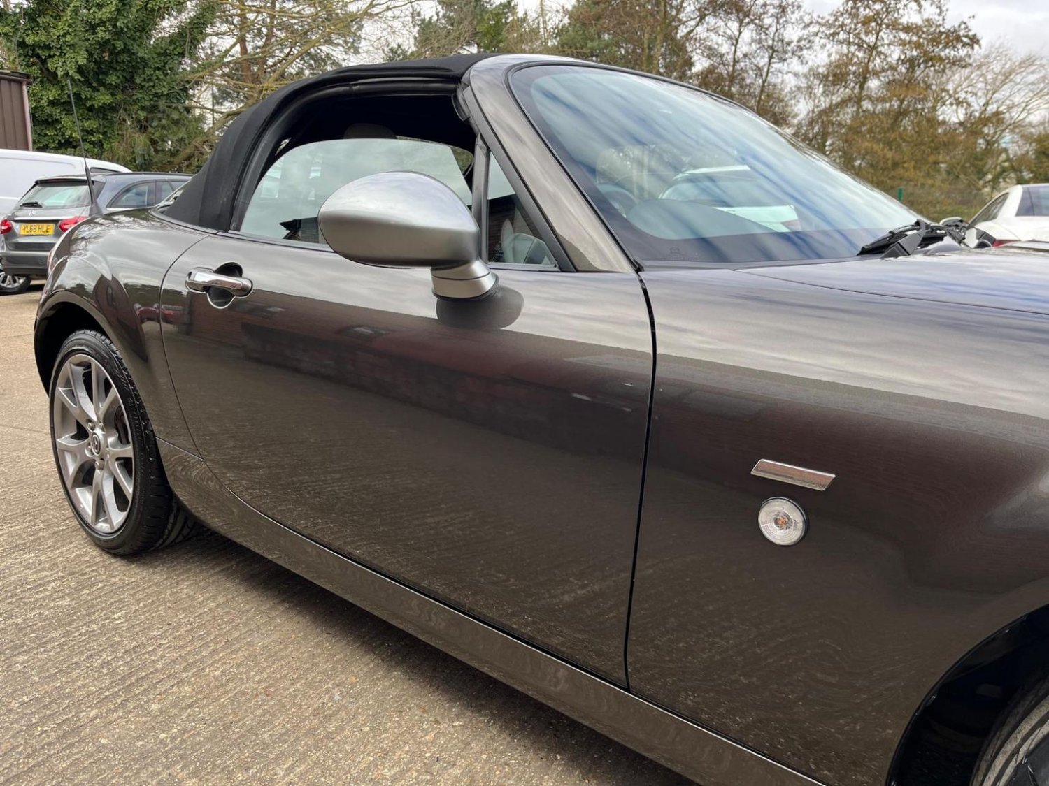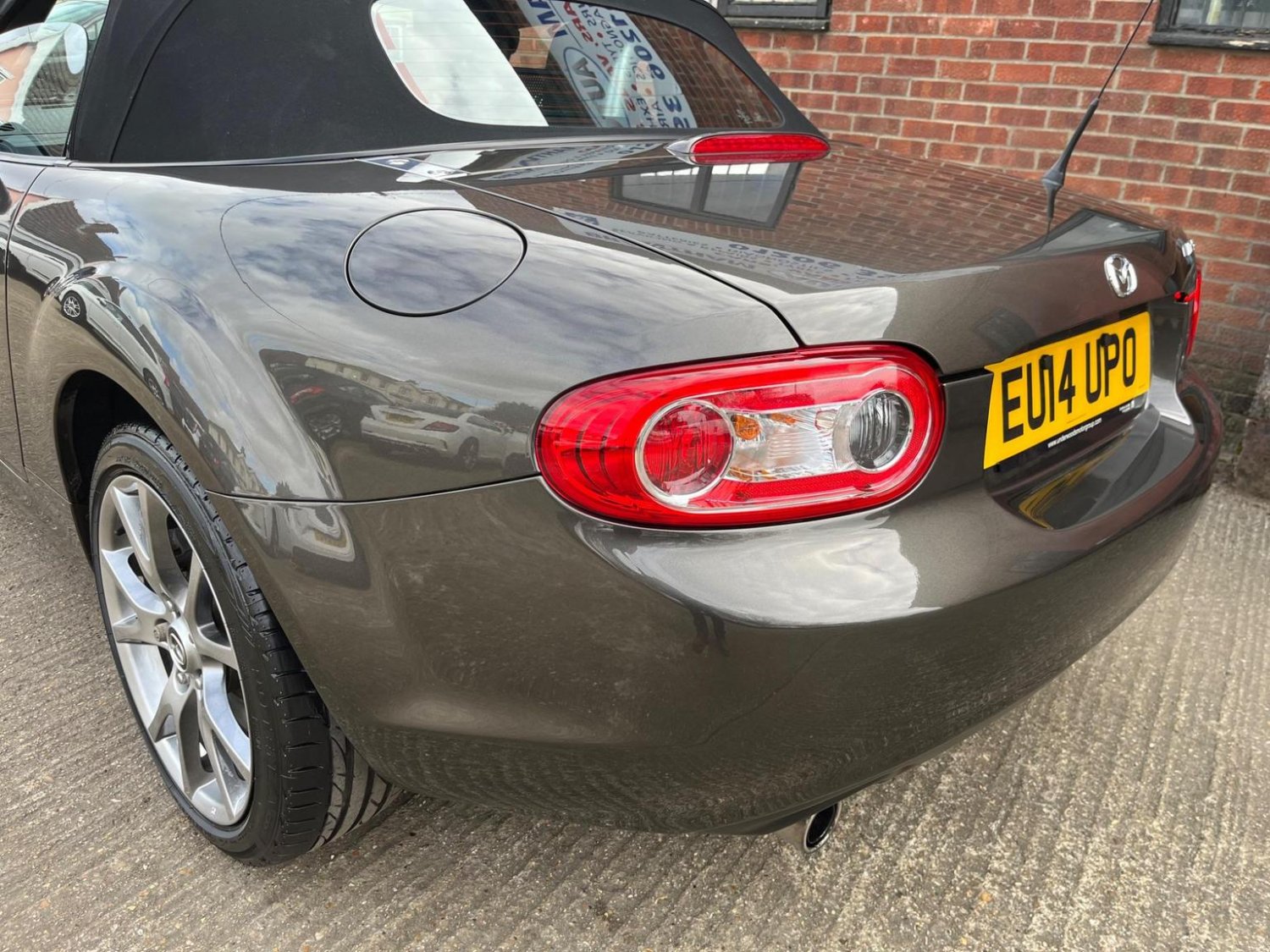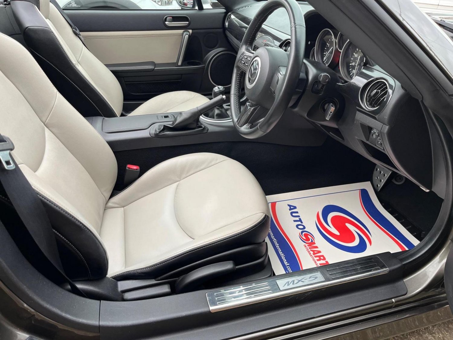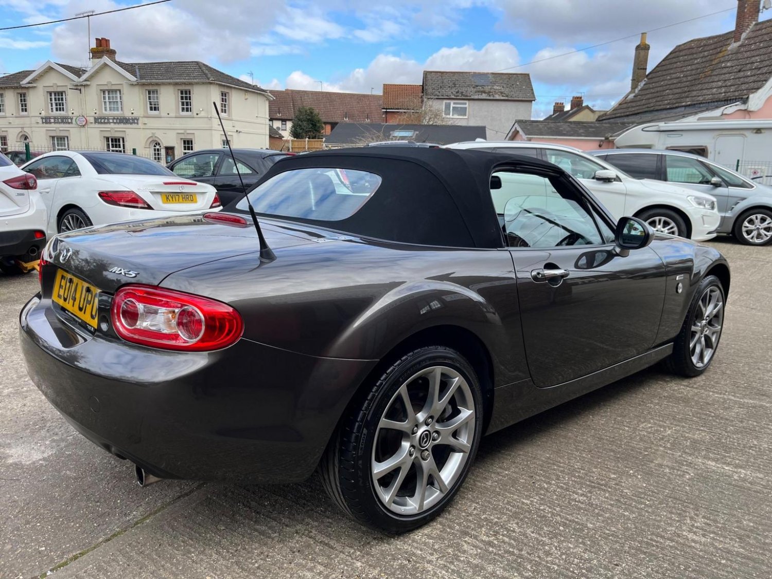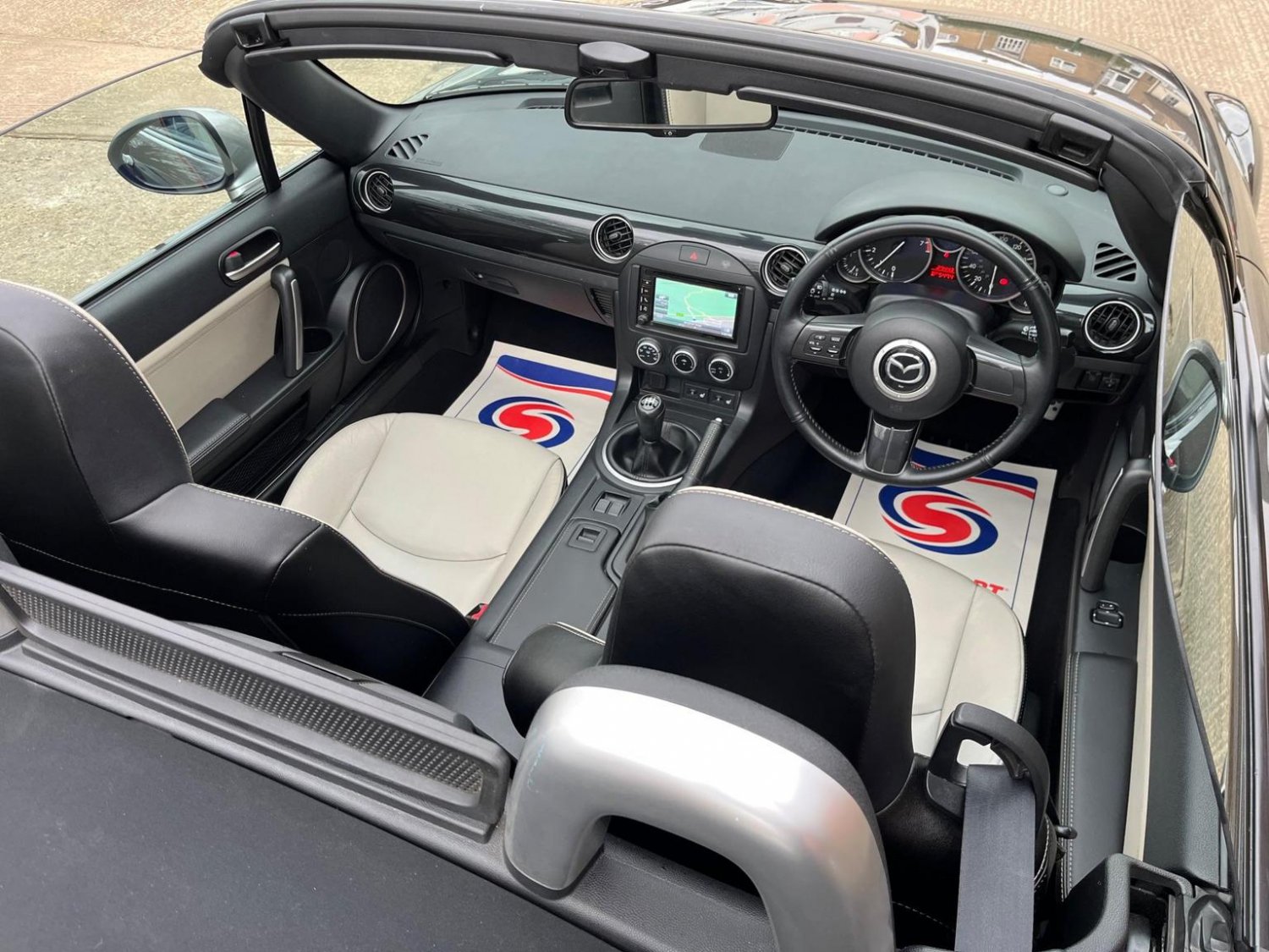 Podium Cars are proud to offer this beautiful Mazda MX-5. This is the highly desirable Sport Venture Edition. Just 27,000 miles from new. Owned from new until late 2023 by a local retired gentleman, who then left the car in his will to a family member following his passing. They kept the car for a little while due to its sentimental value but have now parted with the car as it is surplus to requirements. Clearly cherished since new. The low mileage is supported by a full service history and has just been serviced by ourselves. The MOT expires in March 2026. Matching nearly new Bridgestone Potenza Tyres on unmarked Alloy Wheels. Brand new Front and Rear Brake Discs and Pads have just been fitted by ourselves. Lovely Spec includes Satellite Navigation, Full Leather, Heated Seats, Remote Central Locking, Power Steering, Electric Windows, Original Handbooks, 2 x Mazda Keys, plus more. A fantastic, very genuine example of this hugely popular sports convertible. This car is Hpi Clear. We offer Low Rate Finance packages, tailored to suit your budget. All of our cars are supplied with a 6 Month Bluechip Premium Warranty for your peace of mind. Extended Warranties are available at very competitive prices. A deposit to secure this car can be paid by Debit Card. The balance payment is required by Bank Transfer. The car will remain on sale until a deposit is placed to secure the purchase. Please read our Customer Reviews, we are very proud of our reputation. We are a self financed family business with a passion for Product Quality, Customer Service and Satisfaction. We have operated from our current Brantham location since June 2014. All Part Exchanges are considered, please talk to us before you sell your vehicle elsewhere. Please call us on 07875 599213 before travelling to us to ensure this vehicle is still available, and that we are able to give you the time and attention that you deserve.