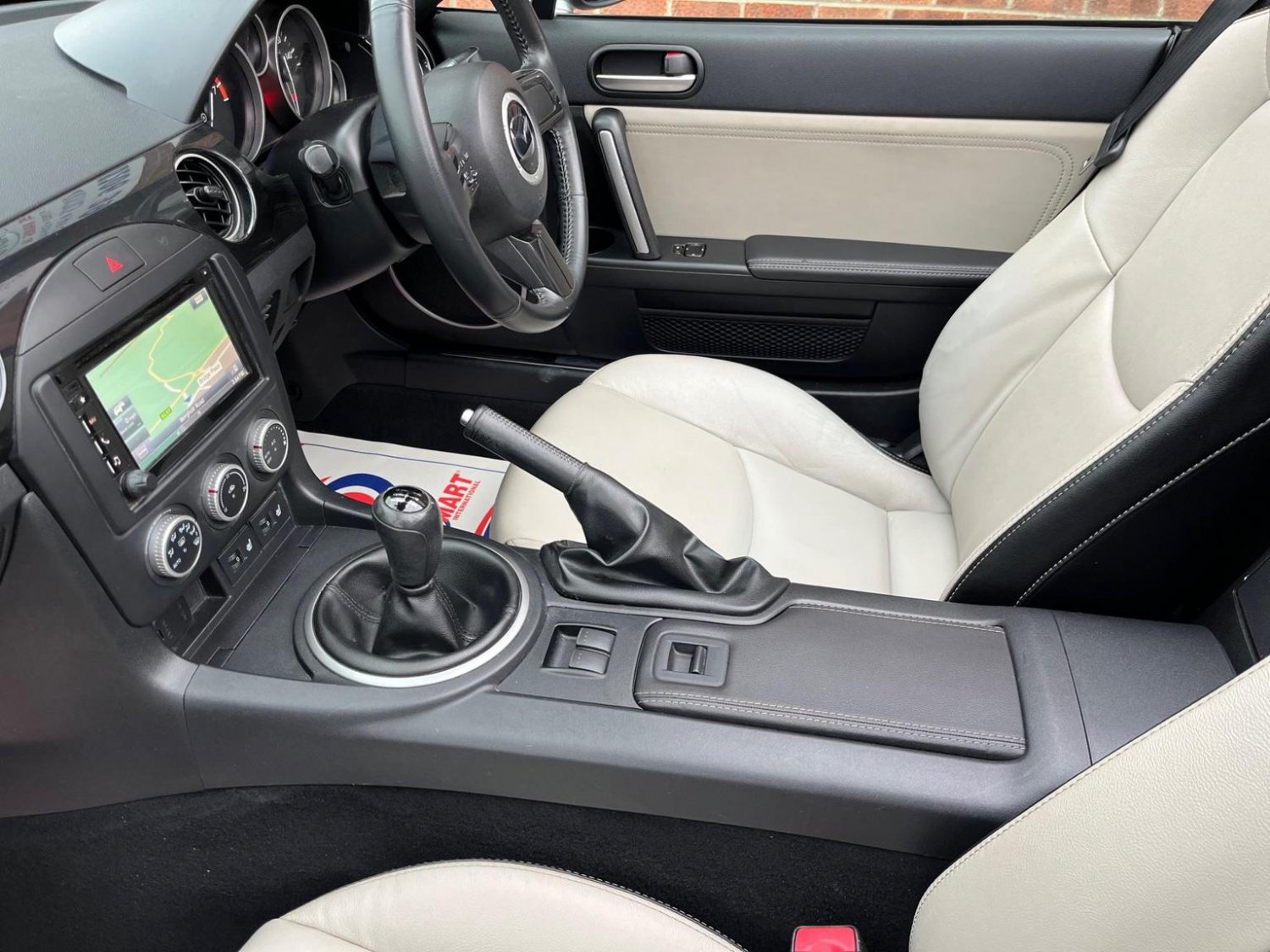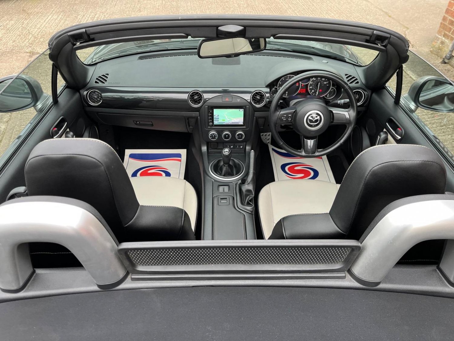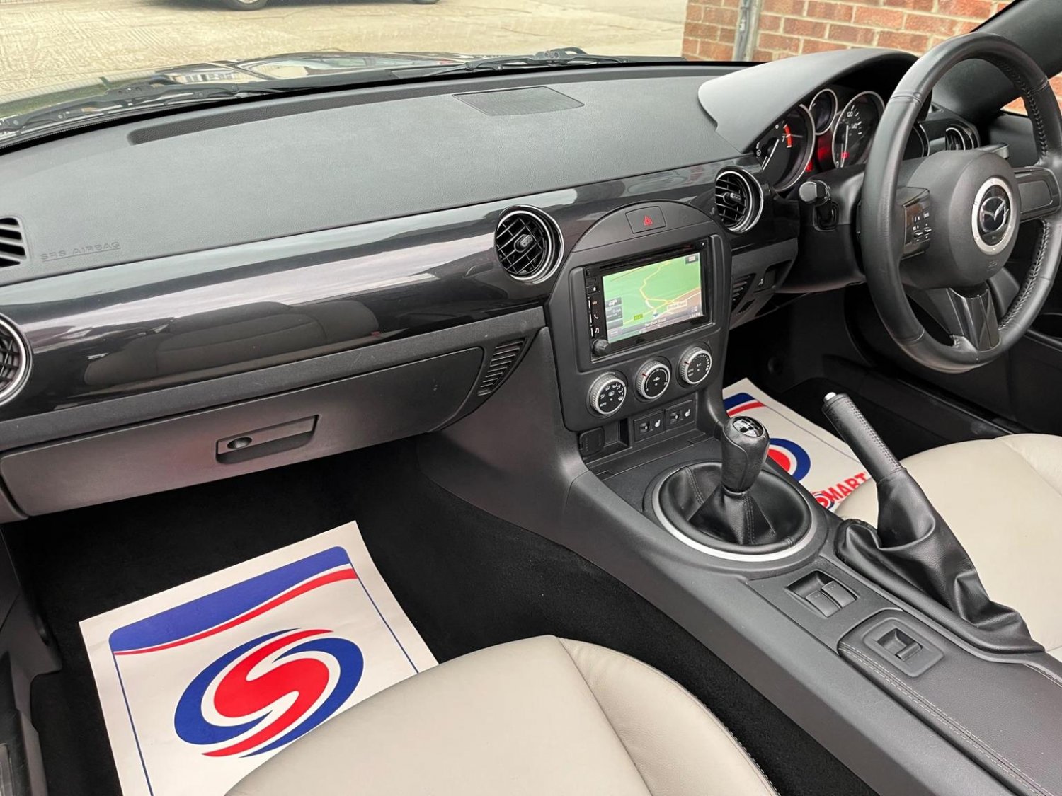 17in Alloy Wheels - Bright Finish, ABS - Anti Lock Braking System, AUX Socket, Air Conditioning - Climate Control, Airbags - Driver, Airbags - Front Passenger, Airbags - Front Passenger Deactivation System, Alpine Navigation System, Audio Systems - AM-FM Radio-CD Player, Auto Dimming Rear View Mirror, Bumpers - Body Coloured, Central Locking - Remote with Deadlocking, DSC - Dynamic Stability Control, Door Handles - Chrome Finish, Door Mirrors - Bright Silver, Door Mirrors - Electrically Adjustable - Heated - Body Coloured, Door Trim Inserts - Stone, EBA - Emergency Brake Assist, EBD - Electronic Brakeforce Distribution, Electric Windows - Front, Exhaust Tailpipes - Twin, Front Fog Lights, Gear Knob - Leather, Handbrake - Leather Wrapped, Headlights - Halogen, Hood - Black Premium Cloth, Integrated Bluetooth System, Mazda Advanced Impact Distribution and Absorption System - MAIDAS, Pedals - Alloy, Pollen Filter, Power Assisted Steering, Remote Boot Release, Satellite Navigation - 50-50 Split Screen, Satellite Navigation - 46 European Country Maps, Scuff Plates - Stainless Steel, Seatback Pocket - Passenger Side, Seats - Drivers Dial Reclining and Height Adjustment, Seats - Front Heated, Side Airbags, Silver Fashion Bar Covers, Speakers x6, Steering Wheel - Leather, Steering Wheel - Mounted Remote Audio Controls, TCS - Traction Control System, Thatcham Category 1 Alarm and Immobiliser, Touch Screen - 6.1in, Trip Computer, Windblocker - Standard