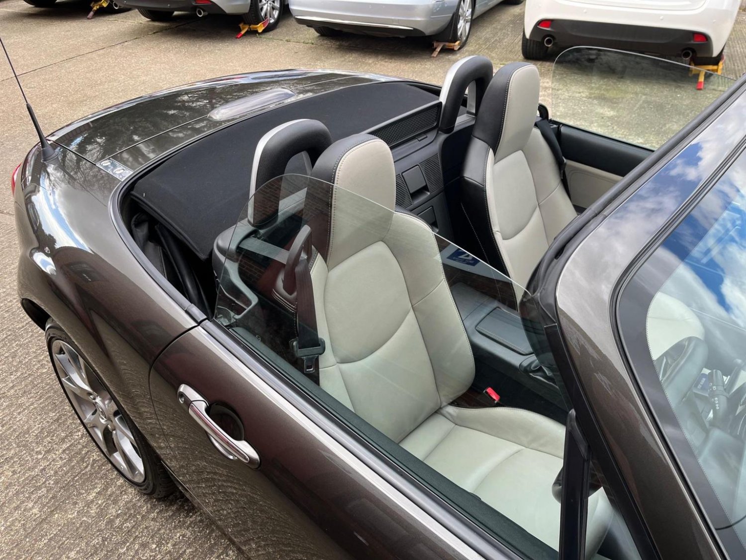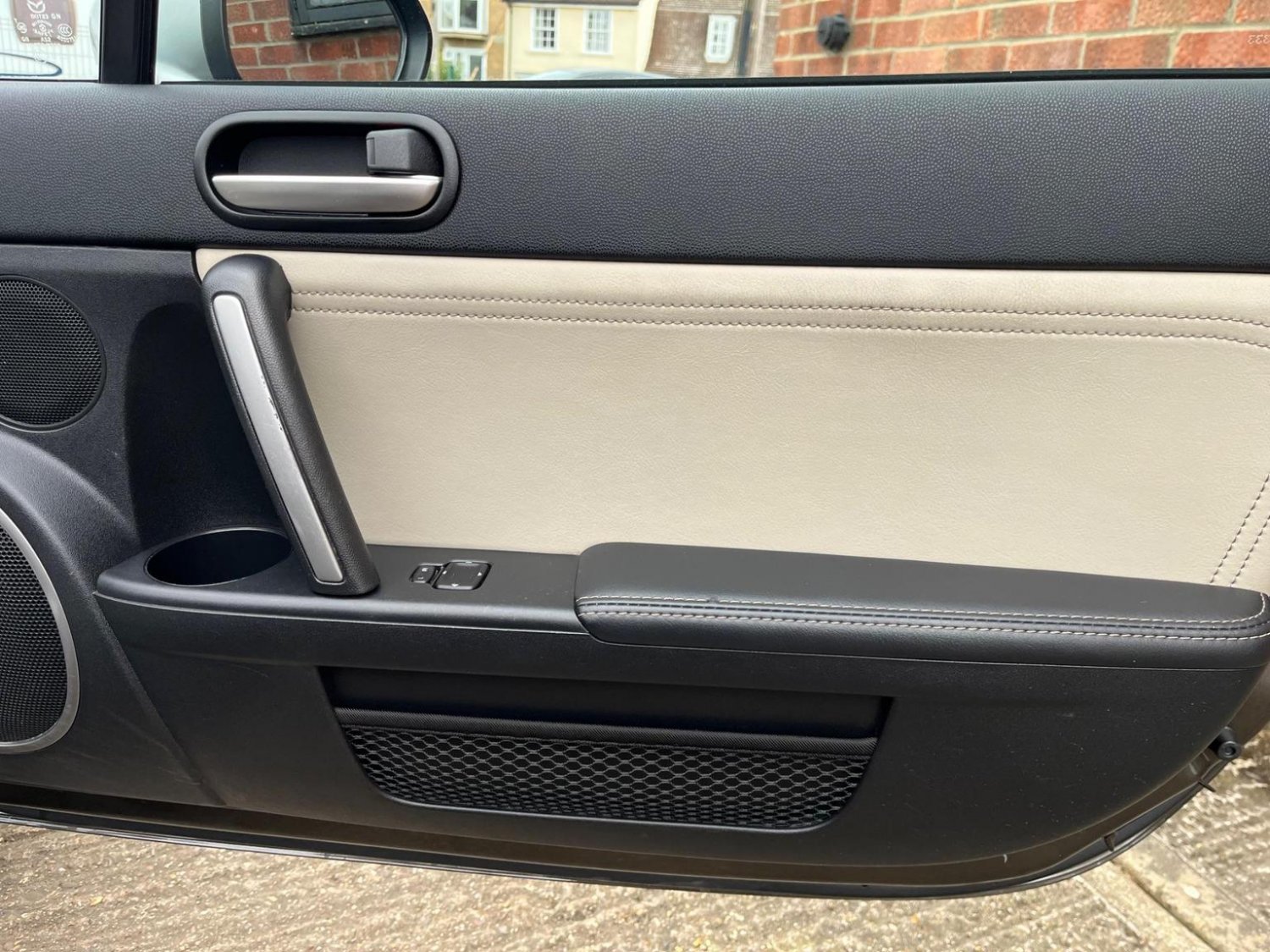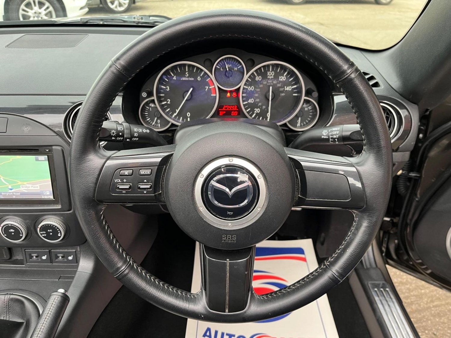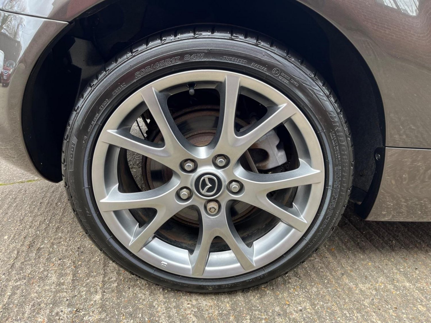 17in Alloy Wheels - Bright Finish, ABS - Anti Lock Braking System, AUX Socket, Air Conditioning - Climate Control, Airbags - Driver, Airbags - Front Passenger, Airbags - Front Passenger Deactivation System, Alpine Navigation System, Audio Systems - AM-FM Radio-CD Player, Auto Dimming Rear View Mirror, Bumpers - Body Coloured, Central Locking - Remote with Deadlocking, DSC - Dynamic Stability Control, Door Handles - Chrome Finish, Door Mirrors - Bright Silver, Door Mirrors - Electrically Adjustable - Heated - Body Coloured, Door Trim Inserts - Stone, EBA - Emergency Brake Assist, EBD - Electronic Brakeforce Distribution, Electric Windows - Front, Exhaust Tailpipes - Twin, Front Fog Lights, Gear Knob - Leather, Handbrake - Leather Wrapped, Headlights - Halogen, Hood - Black Premium Cloth, Integrated Bluetooth System, Mazda Advanced Impact Distribution and Absorption System - MAIDAS, Pedals - Alloy, Pollen Filter, Power Assisted Steering, Remote Boot Release, Satellite Navigation - 50-50 Split Screen, Satellite Navigation - 46 European Country Maps, Scuff Plates - Stainless Steel, Seatback Pocket - Passenger Side, Seats - Drivers Dial Reclining and Height Adjustment, Seats - Front Heated, Side Airbags, Silver Fashion Bar Covers, Speakers x6, Steering Wheel - Leather, Steering Wheel - Mounted Remote Audio Controls, TCS - Traction Control System, Thatcham Category 1 Alarm and Immobiliser, Touch Screen - 6.1in, Trip Computer, Windblocker - Standard