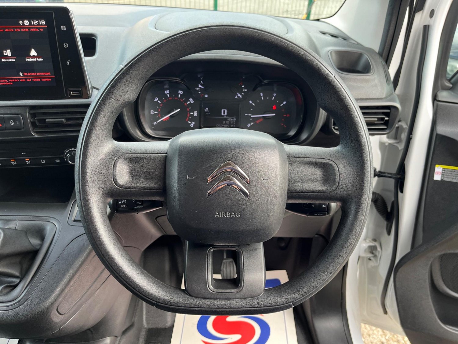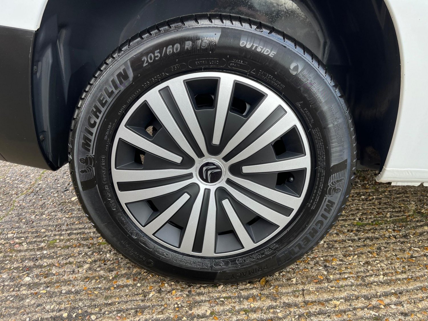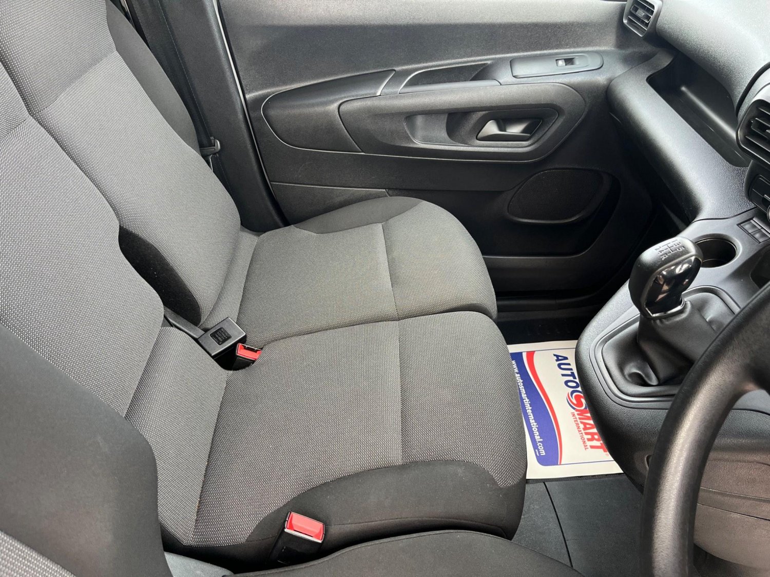 12V Socket in Dashboard, 16in Steel Wheel - Twirl Wheel Trim, 6 Floor-Mounted Load Securing Rings, 6 Way Adjustable Drivers Seat - includes Lumbar Adjustment and Under Seat Storage, 8in Colour Touchscreen with Citroen Connect DAB Radio - Bluetooth Handsfree - USB Socket and Aux-In Jack, Air Conditioning, Airbags - Driver, Alarm - Parametric and Volumetric - Thatcham Category 1 Approved Alarm with Tilt Sensor, Automatic Activation of Hazard Warning Lights on Major Deceleration, Automatic Electronic Parking Brake, Citroen Connect Box with Emergency and Assistance System, Cruise Control with Programmable Speed Limiter, Cup Holders for Driver and Passenger on Either Side of the Dashboard, Dashboard Mounted Central Locking Push Buttons and Auto Locking Above 7 MPH, Door Opening Warning Light and Audible Lights-On Warning, ESC with Hill Start Assist - ABS Braking including EBA and EBFD, EXTENSO Modular Folding Passenger Bench Seat with Pivoting Writing Table - Storage Under Central Seat - Load Through Hatch in Bulkhead and Load Protection Cover Compliant with ISO27956, Electric Power Assisted Steering with Reach and Rake Adjustable Steering Column, Electric Windows - Front with One Touch Operation, Electrically Folding - Adjustable Door Mirrors with Temperature Sensors, Front Fog Lights, Full Steel Bulkhead, Hard Plastic Floor Protection in Cabin, Height Adjustable Halogen Headlights, High Level Third Brake Light, Lockable Fuel Cap, Multi-Function On-Board Trip Computer, Nearside Sliding Side Loading Door, Overhead Storage Shelf in Cabin, Rear Parking Sensors, Remote Central Locking with Deadlocks, Rev Counter with Maintenance and Gear Efficiency - GEI - Indicators, Rolling Code Transponder Immobiliser, Seat Belt Unfastened Warning - Driver, Side Rubbing Strips, Spare Wheel - Full Size Steel, Storage - Door Pockets with Bottle Holders, Top Box Dashboard Storage Compartment, Two Speed Intermittent Front Windscreen Wipers, Tyre Pressure Monitor, Unglazed Asymmetric Rear Doors Opening to 180 Degrees, Visible Vehicle Identification Number at Base of Windscreen