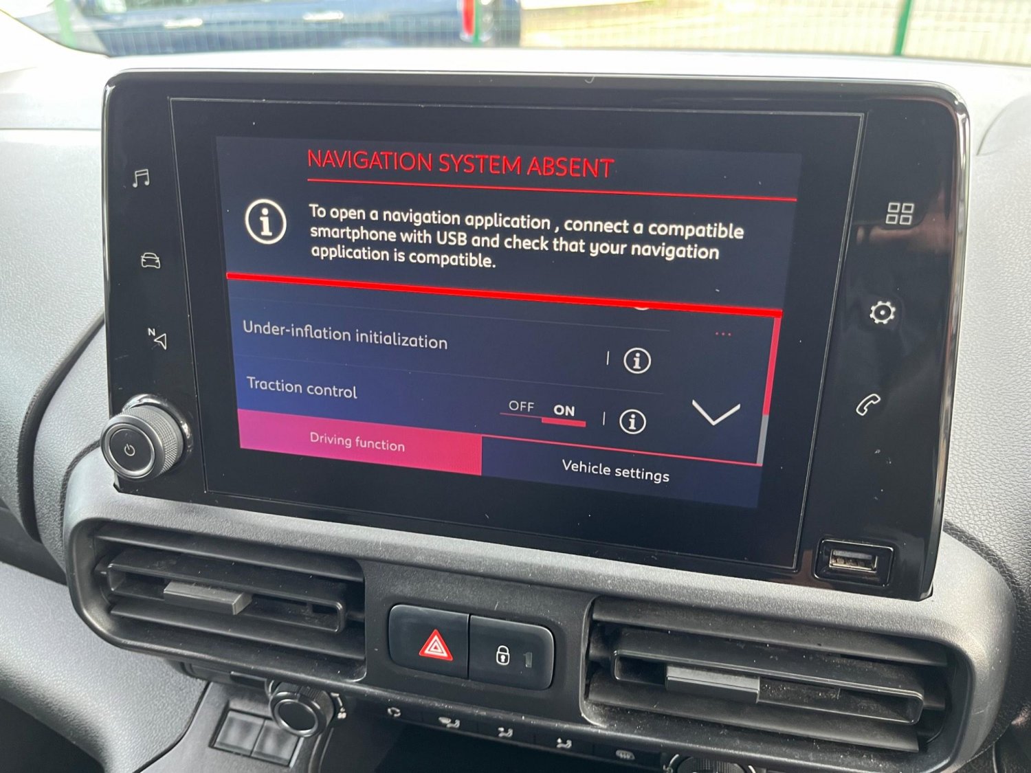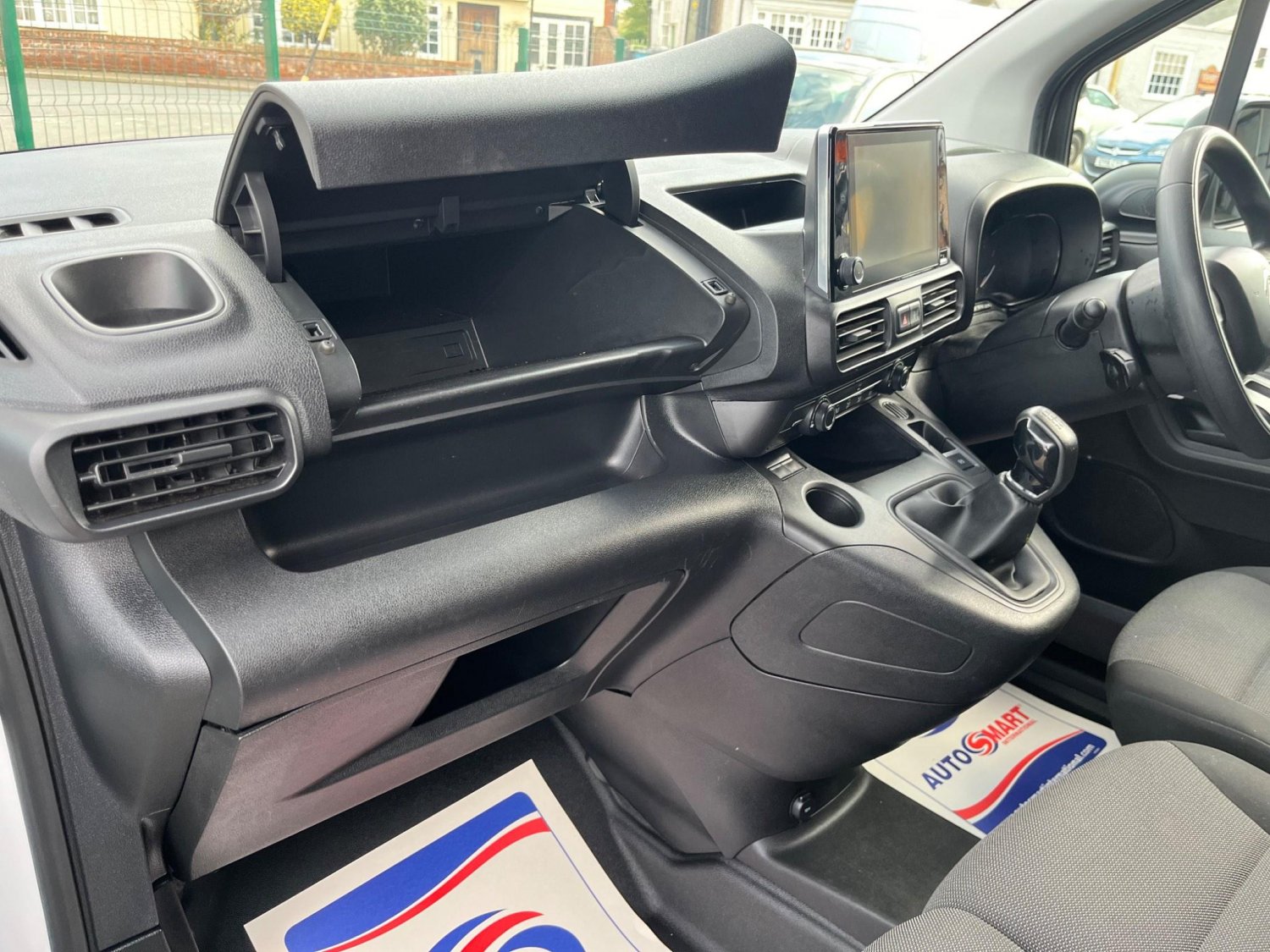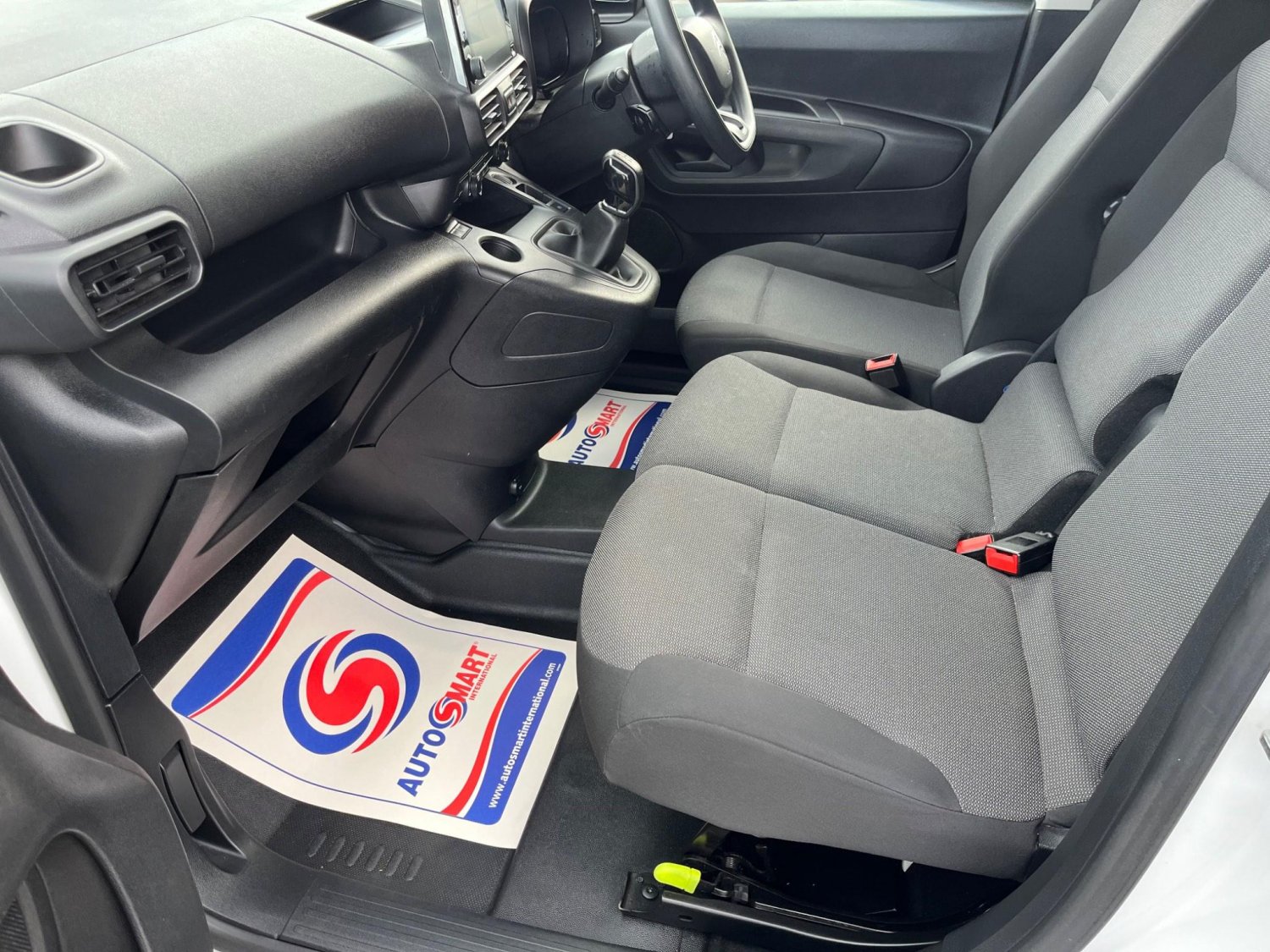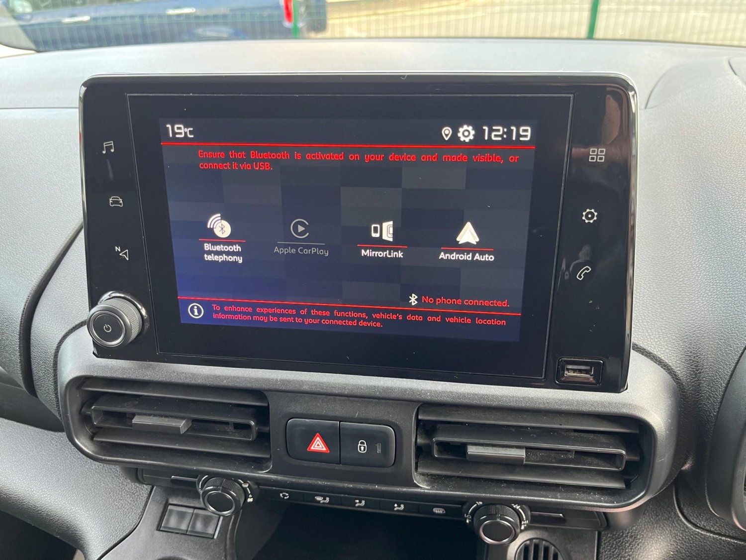 12V Socket in Dashboard, 16in Steel Wheel - Twirl Wheel Trim, 6 Floor-Mounted Load Securing Rings, 6 Way Adjustable Drivers Seat - includes Lumbar Adjustment and Under Seat Storage, 8in Colour Touchscreen with Citroen Connect DAB Radio - Bluetooth Handsfree - USB Socket and Aux-In Jack, Air Conditioning, Airbags - Driver, Alarm - Parametric and Volumetric - Thatcham Category 1 Approved Alarm with Tilt Sensor, Automatic Activation of Hazard Warning Lights on Major Deceleration, Automatic Electronic Parking Brake, Citroen Connect Box with Emergency and Assistance System, Cruise Control with Programmable Speed Limiter, Cup Holders for Driver and Passenger on Either Side of the Dashboard, Dashboard Mounted Central Locking Push Buttons and Auto Locking Above 7 MPH, Door Opening Warning Light and Audible Lights-On Warning, ESC with Hill Start Assist - ABS Braking including EBA and EBFD, EXTENSO Modular Folding Passenger Bench Seat with Pivoting Writing Table - Storage Under Central Seat - Load Through Hatch in Bulkhead and Load Protection Cover Compliant with ISO27956, Electric Power Assisted Steering with Reach and Rake Adjustable Steering Column, Electric Windows - Front with One Touch Operation, Electrically Folding - Adjustable Door Mirrors with Temperature Sensors, Front Fog Lights, Full Steel Bulkhead, Hard Plastic Floor Protection in Cabin, Height Adjustable Halogen Headlights, High Level Third Brake Light, Lockable Fuel Cap, Multi-Function On-Board Trip Computer, Nearside Sliding Side Loading Door, Overhead Storage Shelf in Cabin, Rear Parking Sensors, Remote Central Locking with Deadlocks, Rev Counter with Maintenance and Gear Efficiency - GEI - Indicators, Rolling Code Transponder Immobiliser, Seat Belt Unfastened Warning - Driver, Side Rubbing Strips, Spare Wheel - Full Size Steel, Storage - Door Pockets with Bottle Holders, Top Box Dashboard Storage Compartment, Two Speed Intermittent Front Windscreen Wipers, Tyre Pressure Monitor, Unglazed Asymmetric Rear Doors Opening to 180 Degrees, Visible Vehicle Identification Number at Base of Windscreen